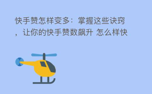 快手赞怎样变多:掌握这些诀窍,让你的快手赞数飙升 怎么样快手赞变多