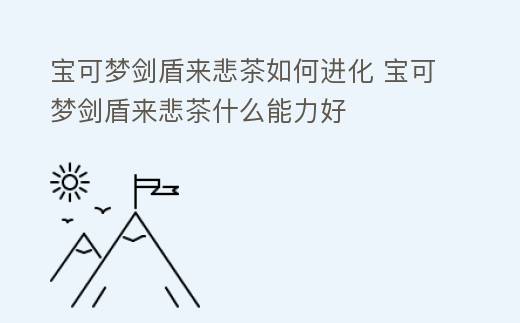 摘要:在宝可梦剑盾的世界中,来悲茶是一种颇为神秘且独特的宝可梦。要让来悲茶成功进化,可不是一件简单的事情,需要玩家们了解其进化的条件和一些关键的要点。来悲茶分为两...,宝可梦剑盾来悲茶如何进化 宝可梦剑盾来悲茶什么能力好