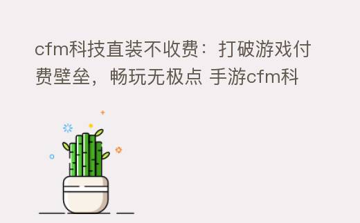 cfm科技直装不收费:打破游戏付费壁垒,畅玩无极点 手游cfm科技