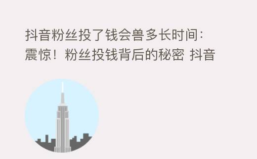 抖音粉丝投了钱会兽多长时间:震惊!粉丝投钱背后的秘密 抖音投钱就能涨粉丝吗