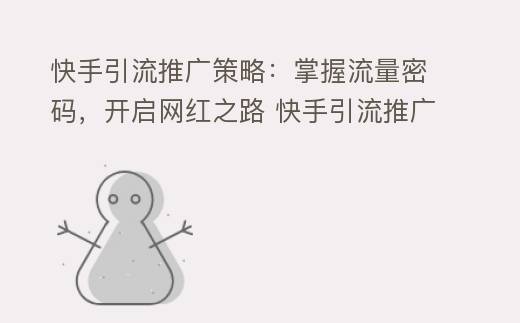 快手引流推广策略:掌握流量密码,开启网红之路 快手引流推广策略有哪些