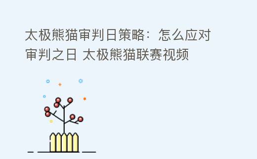 太极熊猫审判日策略:怎么应对审判之日 太极熊猫联赛视频
