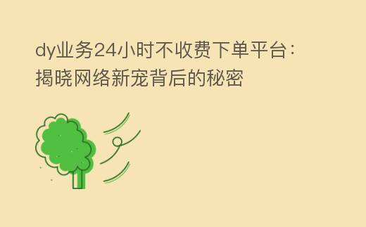dy业务24小时不收费下单平台:揭晓网络新宠背后的秘密