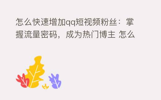 怎么快速增加qq短视频粉丝:掌握流量密码,成为热门博主 怎么快速增加qq访客量的方法