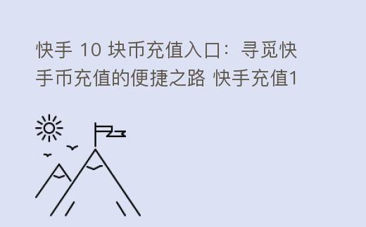 快手 10 块币充值入口:寻觅快手币充值的便捷之路 快手充值10快币