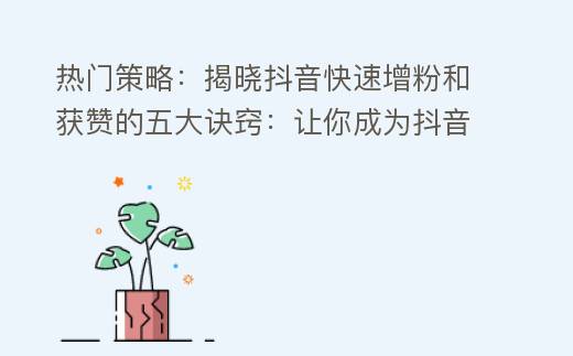 热门策略:揭晓抖音快速增粉和获赞的五大诀窍:让你成为抖音达人的秘诀