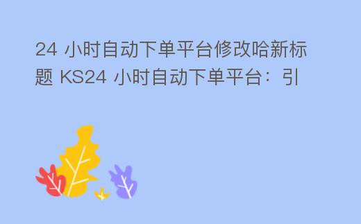 24 小时自动下单平台修改哈新标题 KS24 小时自动下单平台:引领便捷购物新潮流 24小时自动下单平台业务免费