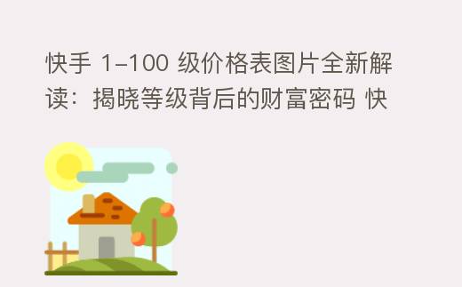 在如今这个短视频盛行的时代,快手作为一款备受欢迎的短视频平台,吸引了无数用户,而其中的等级系统更是成为了用户们关注的焦点之一,大家就来深入解读快手 1 - 100 级价格表图片的全新情况,探寻其中隐藏的奥秘。