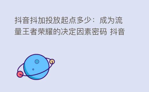 抖音抖加投放起点多少:成为流量王者荣耀的决定因素密码 抖音投斗加