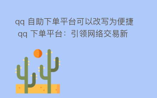 在当今数字化飞速发展的时代,网络交易平台层出不穷,为人们的生活带来了极大的便利。“qq 自助下单平台可以改写为便捷 qq 下单平台”这一概念正逐渐走入人们的视野,并引领着网络交易的新潮流。