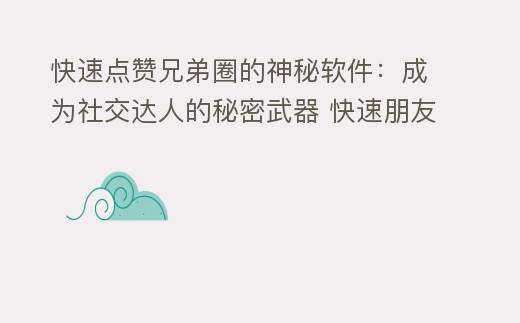 快速点赞兄弟圈的神秘软件:成为社交达人的秘密武器 快速朋友圈点赞