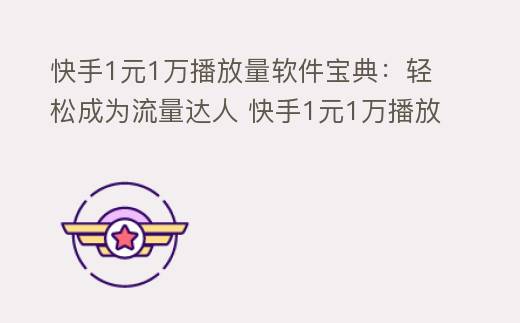 在当今这个短视频盛行的时代,快手已经成为了众多用户展示自我、同享生活的重要平台,而对于许多快手创作者来说,怎么获取更多的播放量是他们一直追求的目标,就为我们带来一份神奇的“快手1元1万播放量软件宝典”,助您轻松成为流量达人。