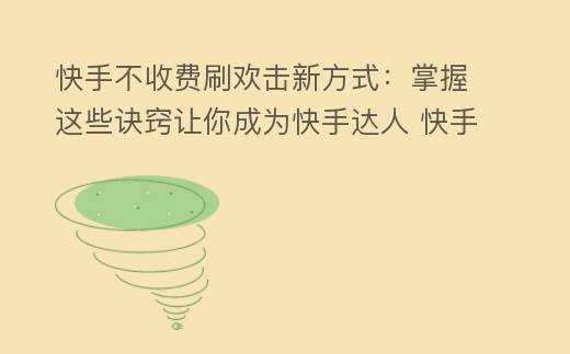 快手不收费刷欢击新方式:掌握这些诀窍让你成为快手达人 快手花不花钱