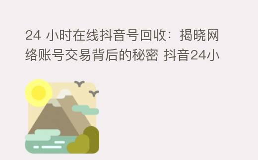 24 小时在线抖音号回收:揭晓网络账号交易背后的秘密 抖音24小时平台