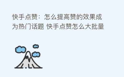 快手点赞:怎么提高赞的效果成为热门话题 快手点赞怎么大批量删除
