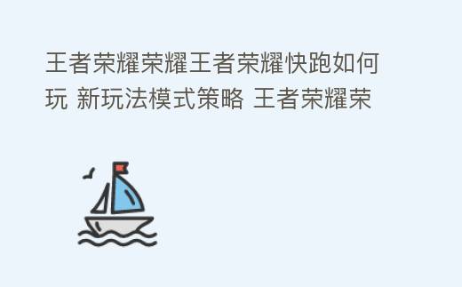 《王者荣耀荣耀王者荣耀快跑模式策略》