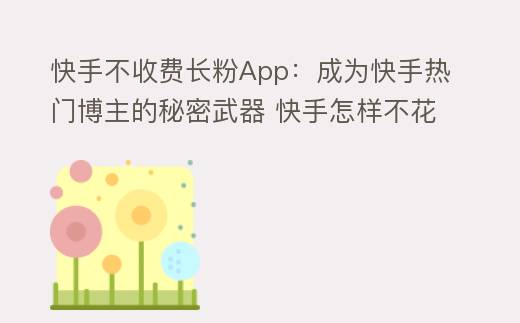 快手不收费长粉App:成为快手热门博主的秘密武器 快手怎样不花钱涨粉
