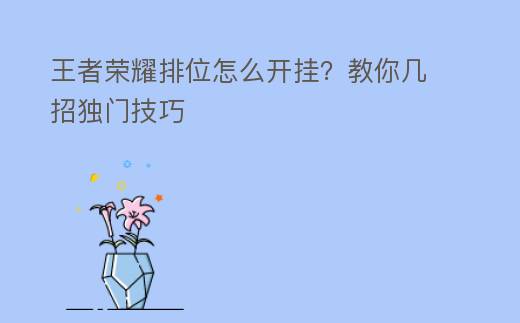 ,如果你想要在王者荣耀排位中获得成功,你需要努力学习游戏并提高自己的技能,而不是利用开挂方式。这些非法行为可能会让你在发现后丢失你的账户或封号。最好的做法是尽可能地发挥你自己的技能,在游戏中赢得胜利。