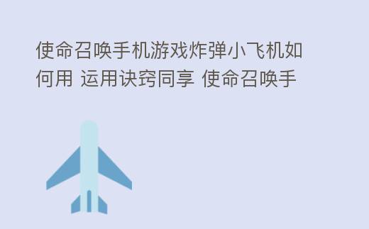 使命召唤手机游戏炸弹小飞机如何用 运用诀窍同享 使命召唤手机游戏怎么玩
