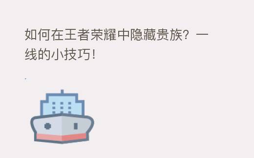 如何在王者荣耀中隐藏贵族?一线的小技巧!