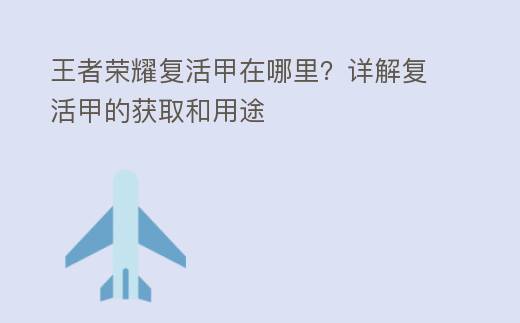 在王者荣耀的游戏中,很多都非常注重自己的装备以及道具的选择。而其中一个非常重要的道具就是复活甲。那么,复活甲在哪里获取呢?在游戏中它的用途又是什么呢?下面就来详细讲解一下。