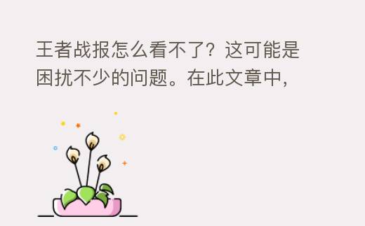 王者战报怎么看不了?这可能是困扰不少的问题。在此文章中,大家将讨论这个问题出现的原因以及如何解决。