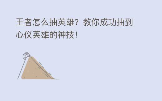 那么,王者怎么抽英雄呢?下面,下面小编带你了解为大家分享一些成功抽到心仪英雄的神技。