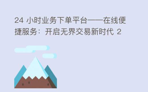 24 小时业务下单平台——在线便捷服务:开启无界交易新时代 24h下单平台