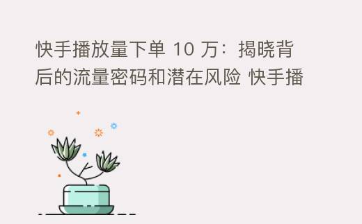 在当今的社交媒体时代,快手作为一款广受欢迎的短视频平台,吸引了无数用户的关注与参加。“快手播放量下单 10 万”这一现象引起了广泛的讨论与关注。