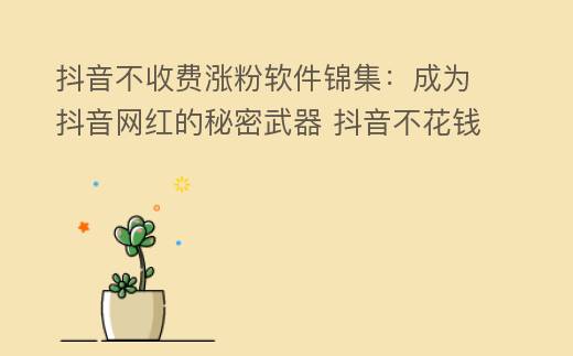 抖音不收费涨粉软件锦集:成为抖音网红的秘密武器 抖音不花钱能涨粉丝吗