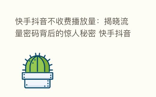 快手抖音不收费播放量:揭晓流量密码背后的惊人秘密 快手抖音不收费怎么设置