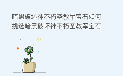 暗黑破坏神不朽圣教军宝石如何挑选暗黑破坏神不朽圣教军宝石挑选主推 暗黑破坏神不朽急速有什么用