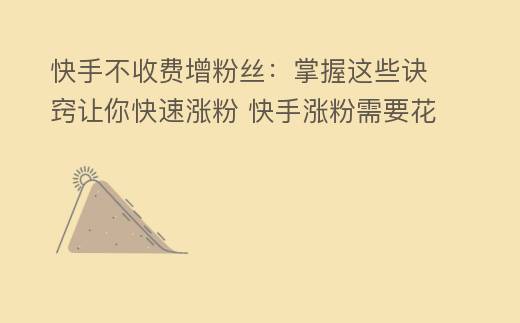 快手不收费增粉丝:掌握这些诀窍让你快速涨粉 快手涨粉需要花钱吗