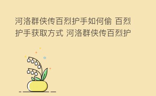 河洛群侠传是款特别受欢迎的游戏,而百烈护手则是游戏中件特别珍贵的装备。许多玩家都想了解怎么获取这件装备,因此我将为我们说明百烈护手的获取方式。