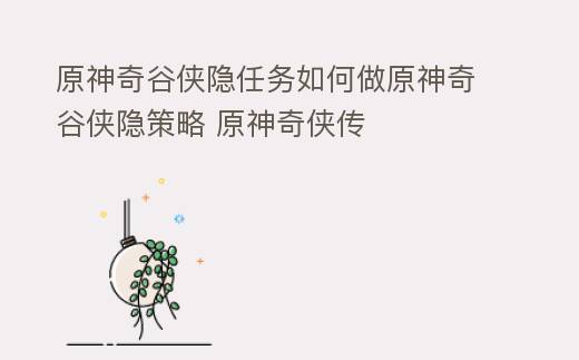 原神奇谷侠隐任务如何做原神奇谷侠隐策略 原神奇侠传