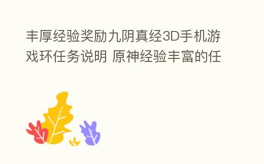 丰厚经验奖励九阴真经3D手机游戏环任务说明 原神经验丰富的任务