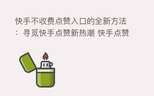 快手不收费点赞入口的全新方法:寻觅快手点赞新热潮 快手点赞需要钱吗