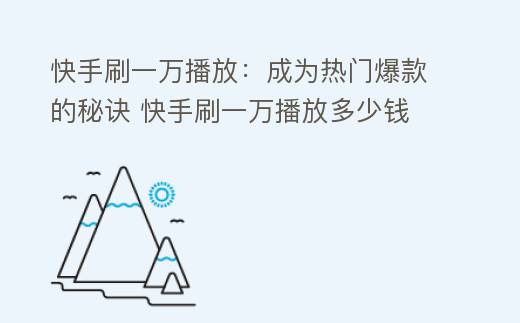 快手刷一万播放:成为热门爆款的秘诀 快手刷一万播放多少钱
