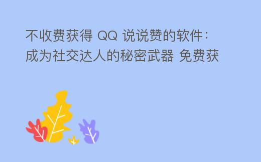 不收费获得 QQ 说说赞的软件:成为社交达人的秘密武器 免费获得qqvip的软件