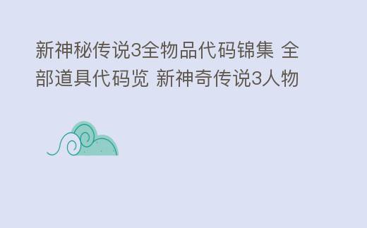 在游戏《新神秘传说3》中,全物品代码和道具代码是玩家获得珍贵物品化解难题提高游戏体验的决定因素。以下是游戏中部分重要物品及道具的代码锦集。