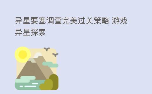 在异星要塞这款游戏中,想要顺利完美过关调查关卡并非易事,需要玩家掌握一系列的攻略与诀窍。