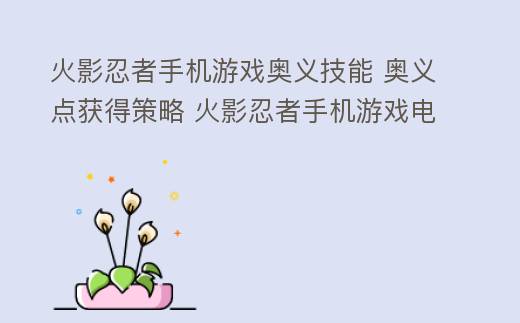 火影忍者手机游戏奥义技能 奥义点获得策略 火影忍者手机游戏电脑版