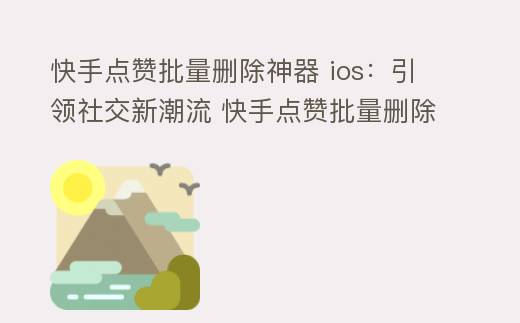 快手点赞批量删除神器 ios:引领社交新潮流 快手点赞批量删除神器ios